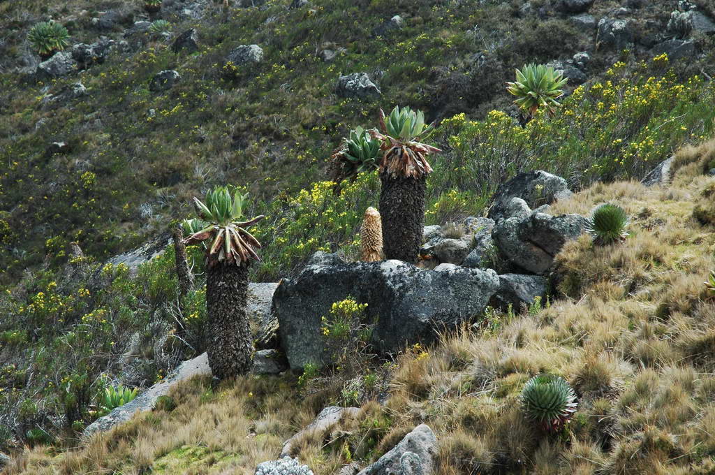 We came down in the valley of the Silesia, a local plant, but it would have been much more picturesque if it hadn’t been foggy and drizzly. One saving grace is that when we reached camp (much more crowded than our earlier camps) the tents were set up already, so we didn’t have to muck around with setting them up in the rain ourselves.