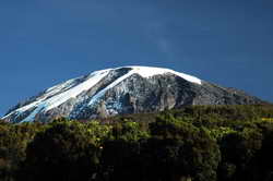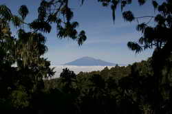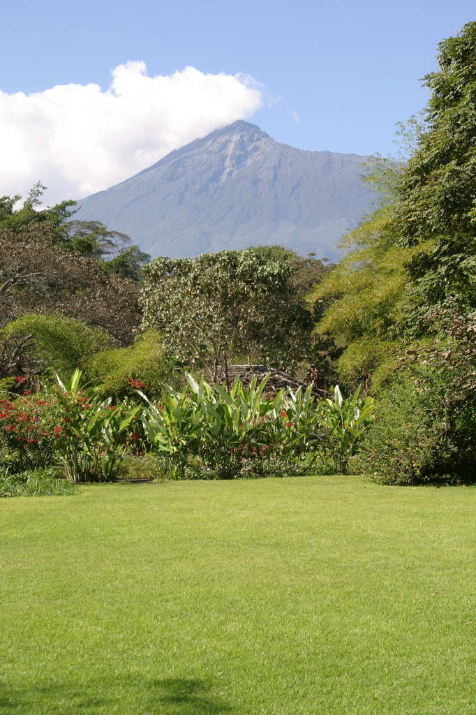 The lodge has a nice view of Mt. Meru (which is a short distance west of Kili), but we never would have guessed it the previous time we were here, as we had solid cloud cover then. Unfortunately, Kili was shrouded by clouds when we had left the mountain, so we could only see the lowest portions of it.