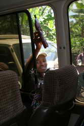 When we got to the main gate, a zoo ensued. We had a short hike down the road to where we were going to eat lunch. Every step of the way, we were hounded by people trying to sell us tee-shirts, crafts, hats, etc. It was rather annoying. Winston, our head cook, was going to be selling things at lunch, so I wanted to wait for that.