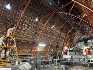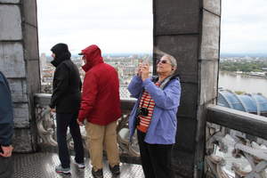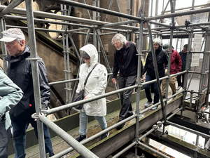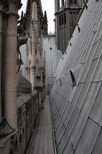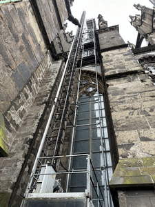 Eventually we went back out to the elevator, and rode it to the top. I was a bit more nervous at this altitude, but the scaffolding was very stable. We went in and around the roof, looking at the roof truss system and the views of the city. It was very strange to be looking sideways at the tops of the spires.