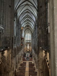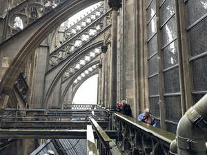 There was a fair amount of scaffolding around the cathedral. I’m not sure if they were cleaning it, maintaining it, or both. We ended up taking a construction elevator up the scaffolding, and then exited onto the halfway part of the scaffolding. She talked a bit about the cathedral, and then we went in a door, and we ended up in a walkway that ran around the inside of the cathedral just below the huge windows. We had really good views of the inside of the cathedral from above.