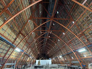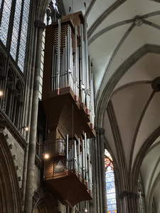 One of the things that she talked about was one of the organs (they have, I think, four organs). It looks like it is clinging to the wall high up between two windows, but in reality it is hanging from the roof trusses. The keyboard is on the inside of it, rather some distance up from the floor. Organists who were afraid of heights had difficulty playing it.