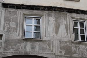 One room had an interesting ceiling fresco. There were painted