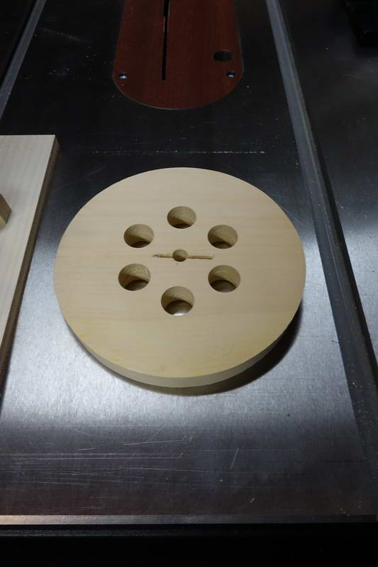 The follower for the eccentric wasn’t as easy. The size of the PVC was between two of my Forstner bits, so I couldn’t just drill it directly. I had to drill it one size smaller and then sand it to make it larger. I couldn’t spin it to make sure that it was staying round, so I just had to be careful and keep trying the fit.
