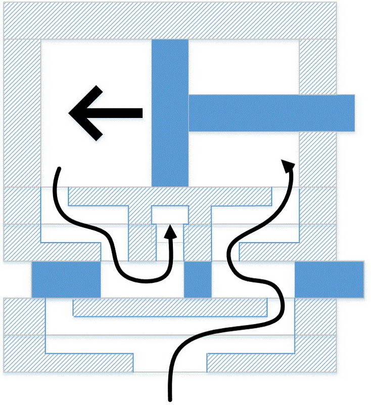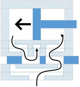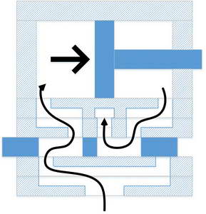 The two pieces below the slider contain a single channel that directs air from the inlet to the ends of the slider.