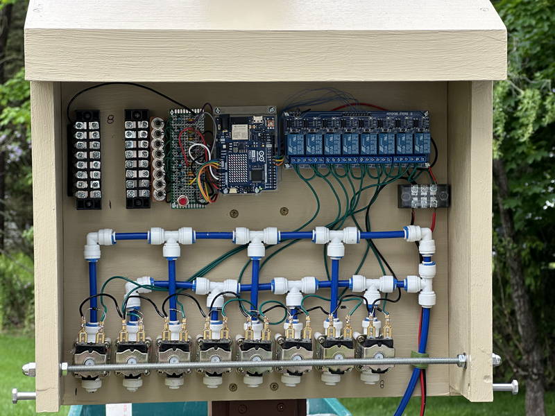 I just finished tweaking and installing Version 2.2 of my watering system. While it essentially worked the previous year, there were two annoying issues with it. I could put them both under the category of "visibility", or more particularly, the lack thereof.