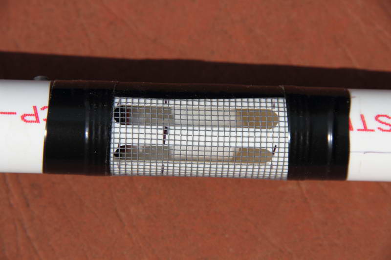 I was concerned with "stuff" getting up in the tube and jamming the float, given that the tolerances were not very generous. So I cut some squares of old nylon stockings, and taped these over the ends of the tubes to act as filters.