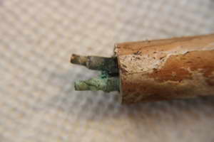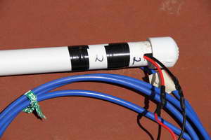 When I took the system apart at the end of last season, I found that the copper wires were noticably corroded. At first, I couldn't figure out why, because I had previously tested immersing such wires with no ill effects. The clue was that the corrosion was not symmetric on both wires. Apparently, even though there was a tiny current flowing through the probe (on the order of 1 micro-amp), it was enough over time to do some sort of electro-chemical mayhem on the copper wires.