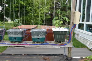 I switched to using a drip irrigation system on a timer. The problem with this, however, is that the different plants and hence planters used water at different rates. If the timer was set to keep the thirstiest plants wet, then the planters for the smaller plants would overflow, and if I adjusted the timer for those plants, then the thirsty plants wouldn't get enough.