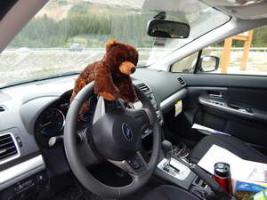 We got in to Canmore around 3:15 and unloaded the car (and gave the new bear a chance to meet the other bears).