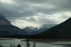 We were sort of waterfalled out, and none of us felt like hiking 1-2km just to see another one, so we loaded up the car and set out for the glacier ice fields. The weather was fairly clear but overcast. In a few cases, the dark clouds were a dramatic backdrop to the mountains, but mostly they were bad for pictures.