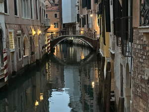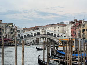 After dinner, we wandered through Venice to get to the Rialto Bridge. Along the way, we got some ice cream for dessert. There are essentially no straight streets in Venice. The streets seem to go straight for a short while, and then end in a tee. We knew which direction we wanted to go in, but we had to keep jogging left and right rather than going in a straight line.