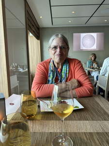 I got back on board, got rid of my sweat-soaked clothes, took a shower, and put on my clean evening clothes. I did a little typing, while listening to the pianist and cellist that we liked, then we went to dinner at the “Chef’s Table”.
