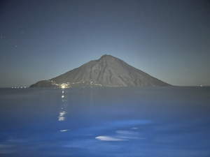 Not surprisingly, it was very dark out. There were a few lights off of our starboard side, and I found that if I cupped my eyes to block out the ships lights a bit, I could just make out a cone. Some people nearby told us that it was, in fact, Stromboli. There were no lights from the summit, but around sunset, you could see some plumes of smoke from it.
